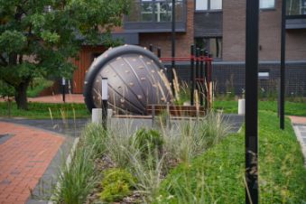 Жилой комплекс Витязь — проект ЧерриДом, где двор становится полноценным местом для отдыха. В центре — раскидистый дуб и арт-объект в виде желудя, вокруг — зелёные зоны с тенистыми аллеями и местами для семейных прогулок.
