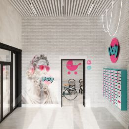 Жилой комплекс В-Сити — 14-этажный дом с характером. Архитектура вдохновлена эстетикой фильма "Завтрак у Тиффани" и атмосферой большого города. Фасад украшен вертикальными полосами цвета Tiffany, в доме — дизайнерские подъезды и два бесшумных лифта.