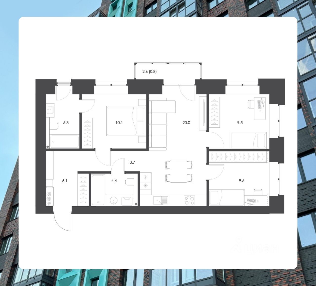 Продаётся 3-комнатная квартира 63 в жилом комплексе В-Сити от застройщика ЧерриДом.