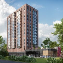 14 этажей, фасад цвета Tiffany, дизайнерские подъезды — это не типовая новостройка, это дом с характером. Всего 64 квартиры — камерный дом, где соседей знаешь в лицо. Представьте: дети гуляют во дворе рядом с трёхметровым Давидом-скалодромом, а вы наблюдаете из окна. Вечером спускаетесь вместе — клубника, гамаки, мягкая подсветка. Даже лифты здесь дизайнерские — их два. В холлах — колясочные и велосипедные, чтобы в квартире было просторно.