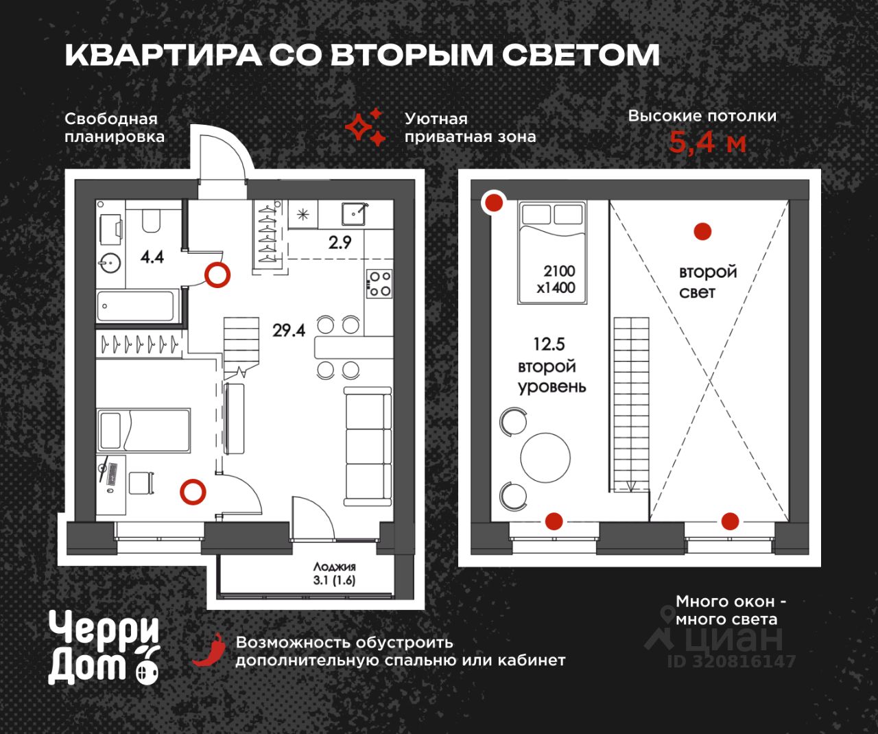 Продаётся квартира 38 со свободной планировкой в жилом комплексе Чили от застройщика ЧерриДом.