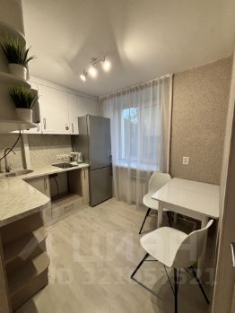 В квартире остаётся удобный кухонный гарнитур, сделанный на заказ, встроенная вытяжка и варочная панель.