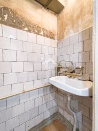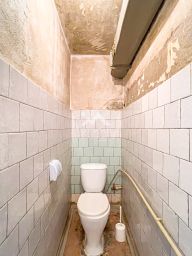 В квартире туалет и просторная ванная комната, в которой есть возможность разместить и ванну, и душевую, и постирочную с местами хранения.