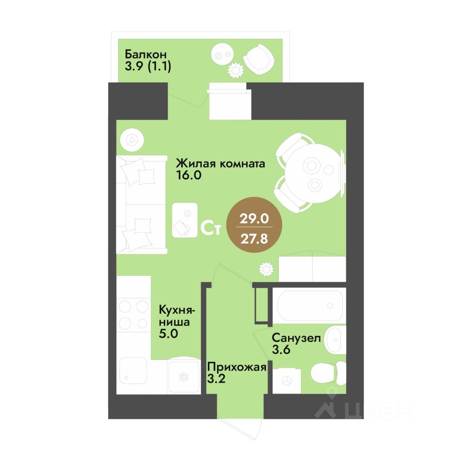 Продается студия, 29 м²