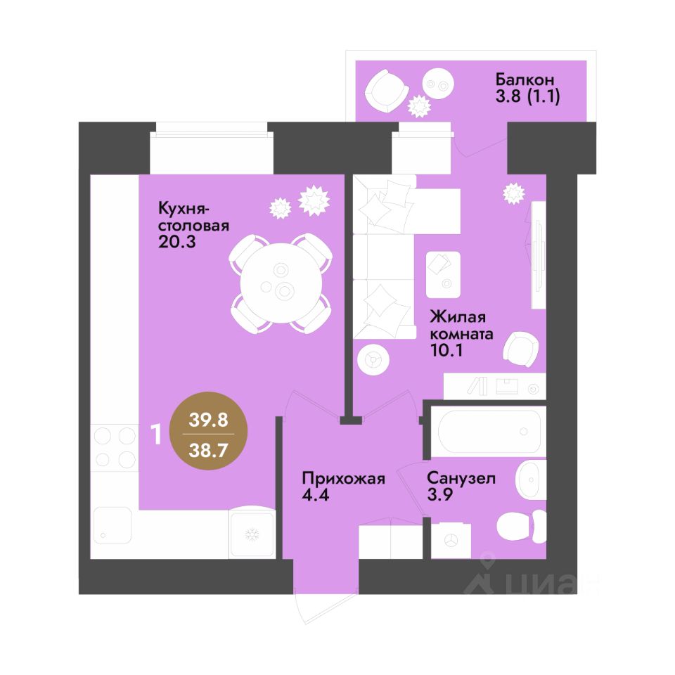 39,8 м²