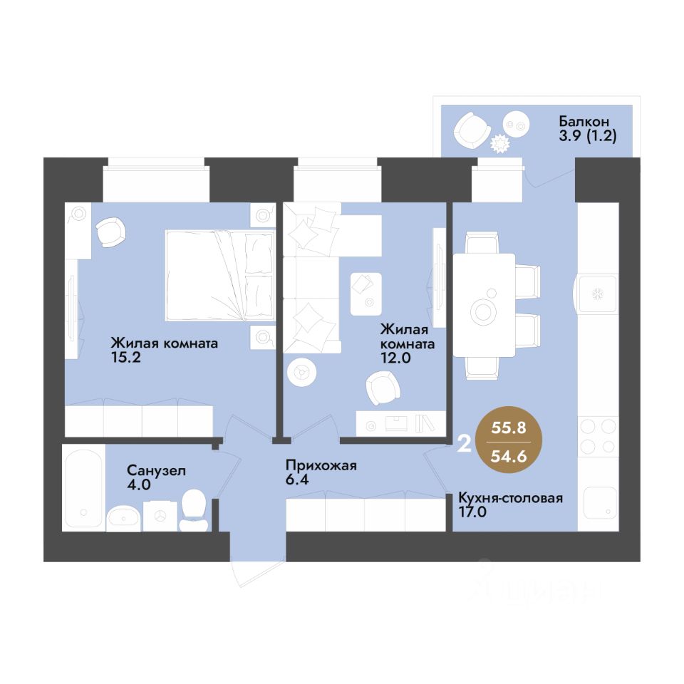 55,8 м²