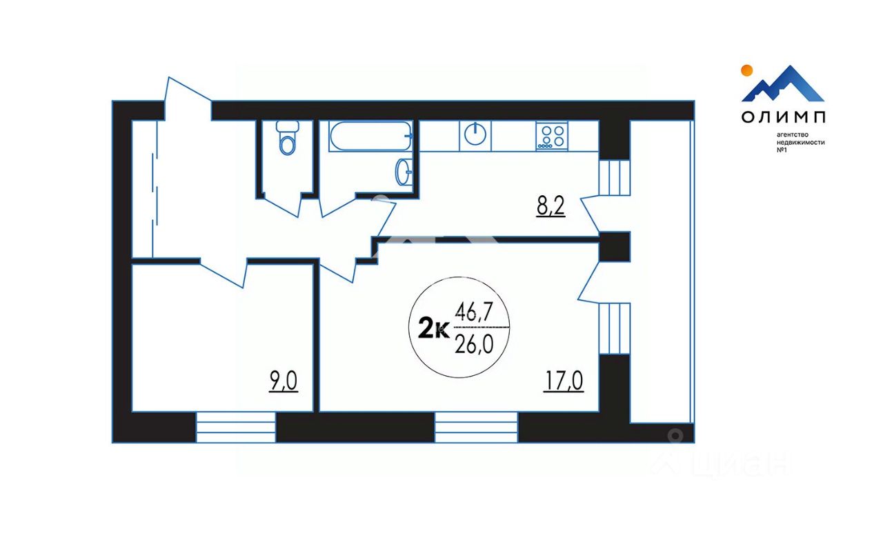 На кухне площадью 8,2 кв. м вы сможете реализовать свои кулинарные идеи. Кроме того, в квартире есть лоджия — отличное место для отдыха и утреннего кофе.