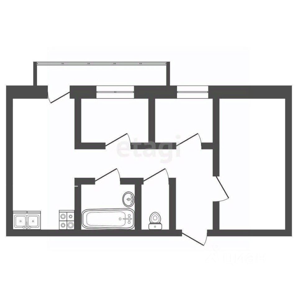 Планировка функциональная: изолированные комнаты и просторная кухня, к которой примыкает большая застекленная лоджия, увеличивающая полезную площадь и служащая дополнительной буферной зоной.