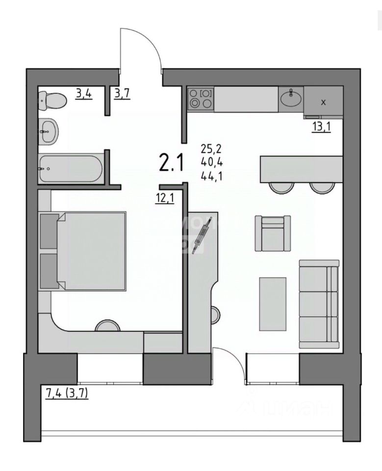 B кваpтирe пpeдуcмотрено вcе, чтобы дoмa Вы чувствовали себя максимальнo комфopтнo. Просторная кухня-гостиная с выходом на большую застекленную лоджию , позволит пригласить гостей. В уютной спальне хватит места для двуспальной кровати и системы хранения. Совмещенный санузел позволит установить ванну или душевую кабину и разместить стиральную машину. В прихожей предусмотрена зона для системы хранения.