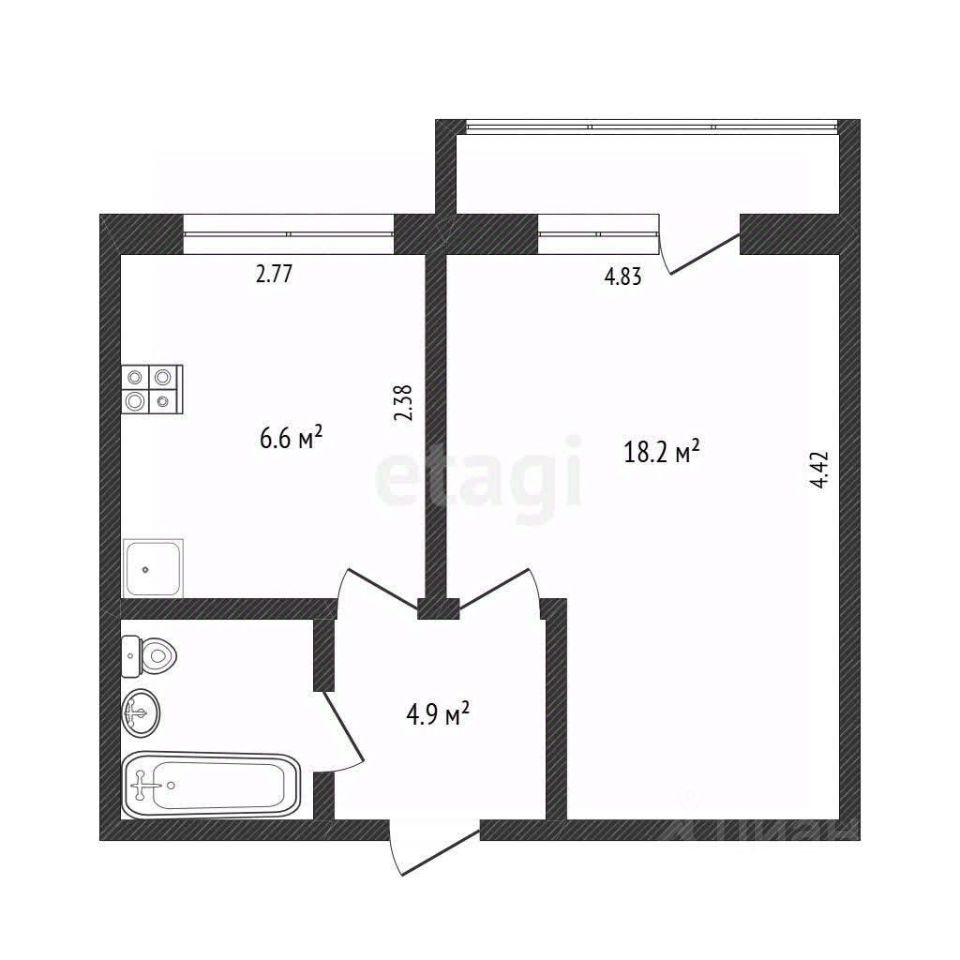 Квартира без ремонта, что дает возможность новому владельцу воплотить собственные дизайнерские идеи и создать интерьер по своему вкусу. Просторная комната и кухня, совмещенный санузел и балкон, окна которого выходят во двор, создают комфортные условия для жизни. В квартире можно установить необходимую мебель и технику для удобства.