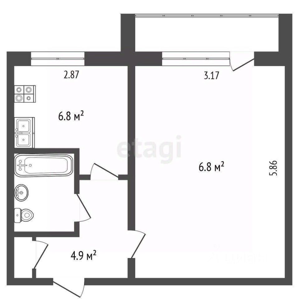 6,8 м²