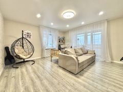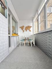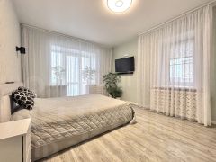Площадь 101 кв. м. Кухня 13 м. Комнаты большие 25, 18 и 15 метров. Так же в квартире есть огромный балкон из кухни, небольшой панорамный из спальни и большой из зала. Окна квартиры выходят на три стороны: во двор, на ул. Лаврова и на реку. Потолки 2,7м. Установлены тёплые полы в прихожей и ванной. В квартире есть гардеробная комната и вместительная кладовая.