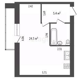- Площадь 33.6 м2;