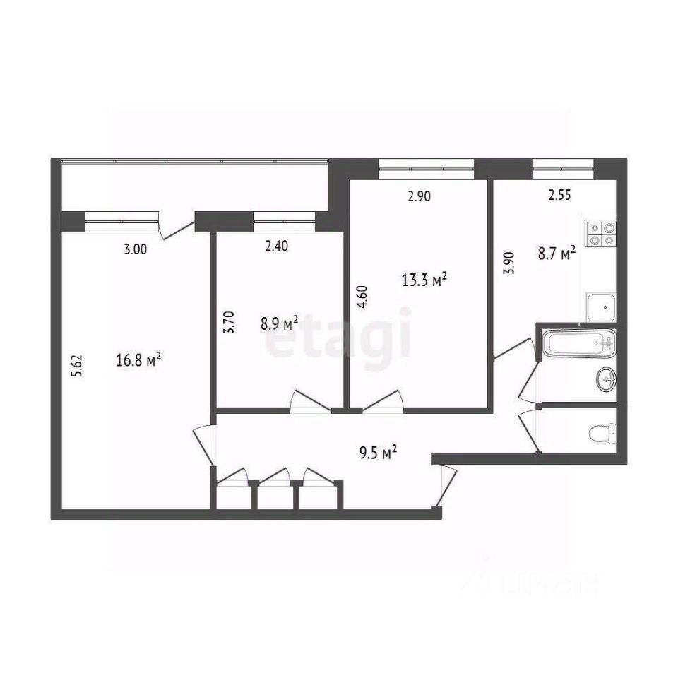 61,3 м²