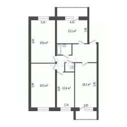 Квартира площадью 106м : кухня-гостиная 30, спальня 19; детская 19; кабинет 13; просторная прихожая, раздельный сан узел, лоджия.