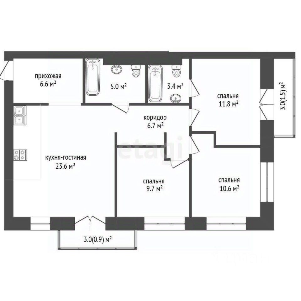 Квартира расположена на комфортном 3 этаже. Продуманная планировка не оставит равнодушными новых владельцев. Просторная кухня-гостиная 23 м2, где можно собираться большой дружной семьей. Три изолированные спальни, в том числе одна мастер-спальня позволят каждому члену семью уединиться. Так же в квартире есть два санузла площадью 5,1 м2 и 3,4 м2. Лоджия и балкон с панорамным остеклением делают квартиру очень светлой. Перепланировок не проводилось.