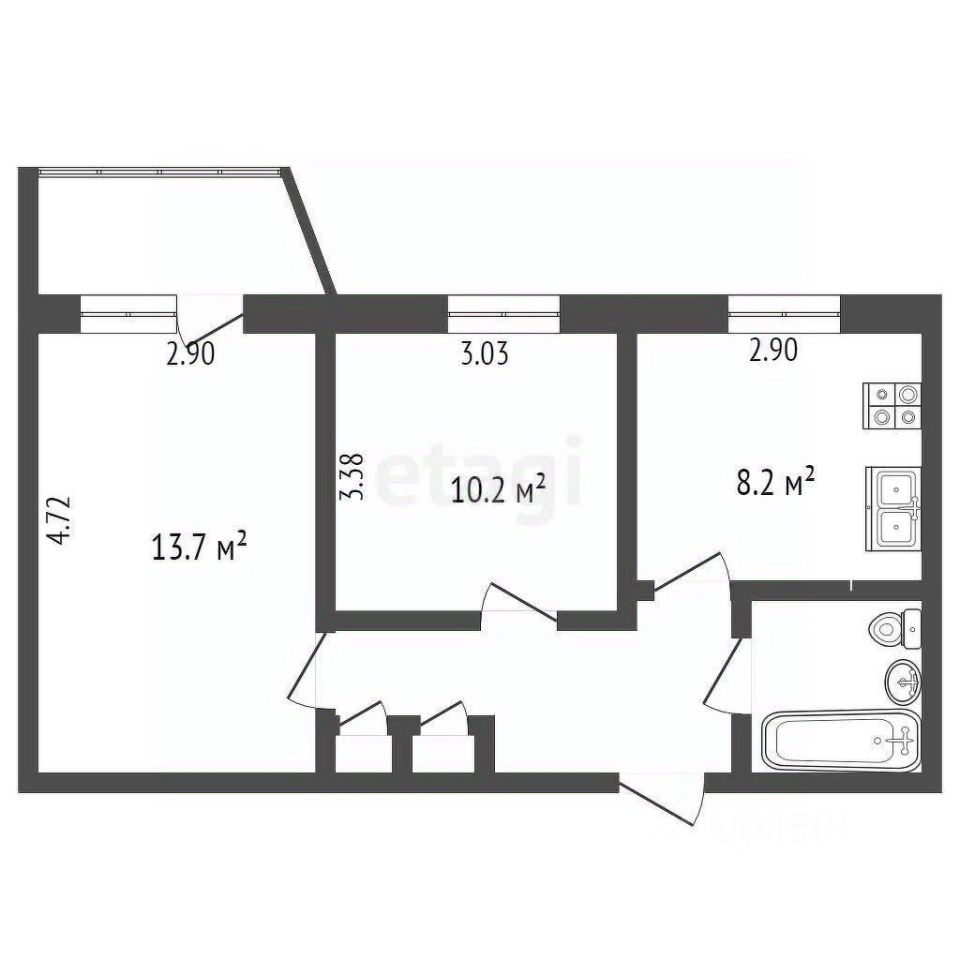 Площадь квартиры 41,7 кв.м, просторная кухня 8,2 кв.м, где можно поставить даже диван. В квартире сделан качественный ремонт: совмещенный санузел в кафельной плитке, установлены натяжные потолки, новые межкомнатные двери, пластиковые стеклопакеты, просторная. В прихожей предусмотрен встроенный шкаф для хранения вещей.