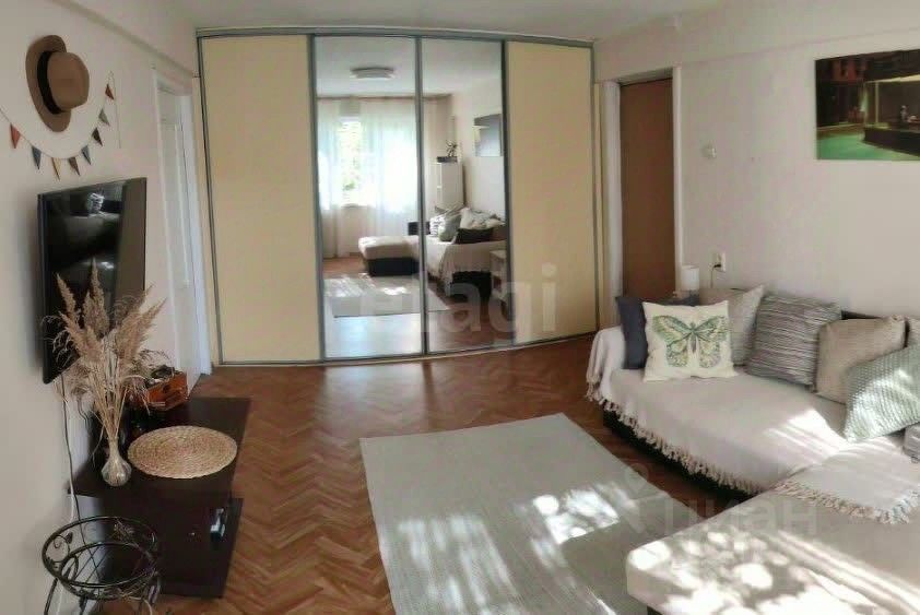 Квартира наполнена светом благодаря окнам, выходящим на солнечную сторону. В гостиной установлен вместительный шкаф-купе с зеркалами в пол, который добавляет функциональности и визуально расширяет пространство. Открытый балкон окружен зеленью, что гарантирует вам приватность и отсутствие "окна-в-окно".