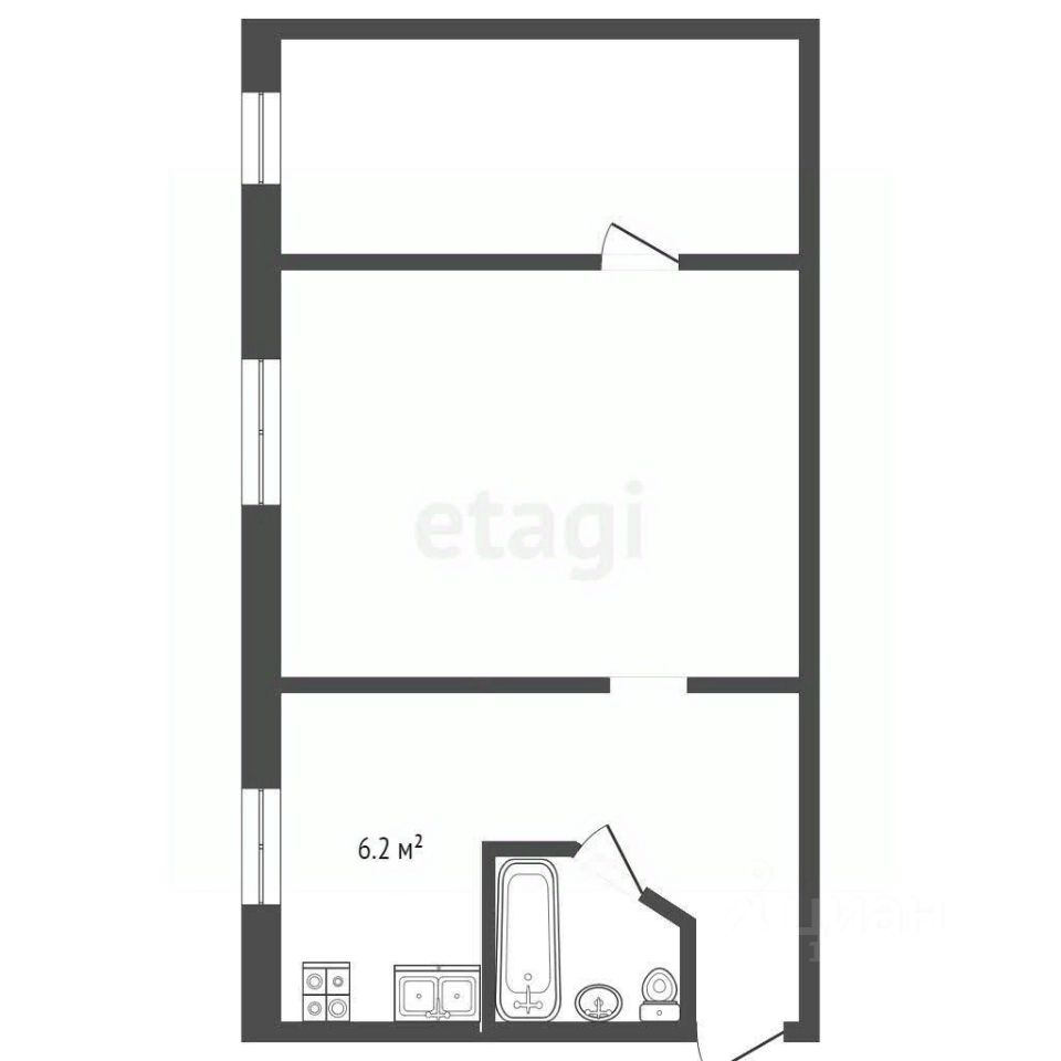 Квартира общей площадью 42,4 м2.