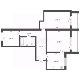 Интересная планировка: окна выходят на восток и запад (подъезд дома удален от проезжей части), две раздельных утепленных лоджии с освещением, 2 комнаты из трёх 17 м² и более, кухня 10,4 кв.м. В коридоре имеется вместительный встроенный шкаф, потолочный стеллаж.