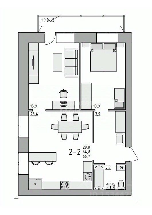 Комната 2) 13.9м