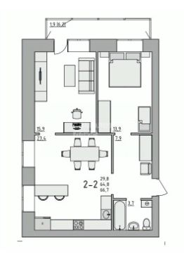 Данная квартира общей площадью 66.7м