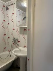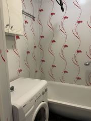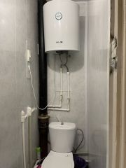 Ванна и туалет раздельные, на стенах панели, установлен водонагреватель.