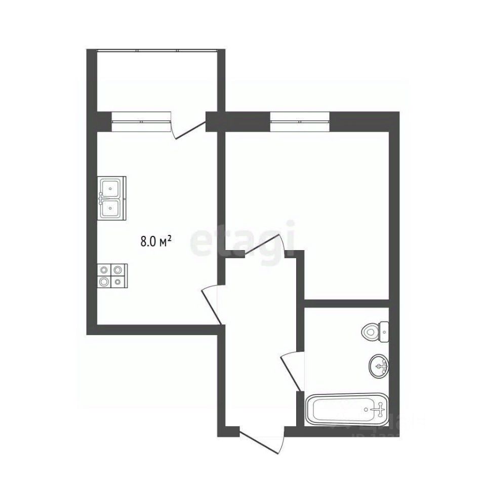 Жилая зона составляет 15 квадратных метров и идеально подойдет для обустройства спальни или гостиной. Кухня занимает 8 квадратных метров. Также имеется совмещенный санузел и балкон.