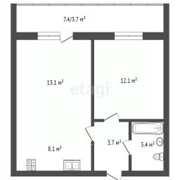 Просторная 1 ком. квартира площадью 44.1 м2. Просторная кухня-гостиная 21.2 м2 и комната площадью 12.1 м2. Звоните, записывайтесь на просмотр!