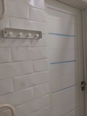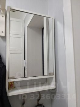 в ванной - шкаф , тумбочка под раковиной, вешалка , два зеркала,