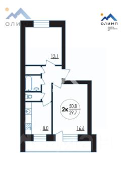 Площадь квартиры 50,8м2; + лоджия 6,6м2.