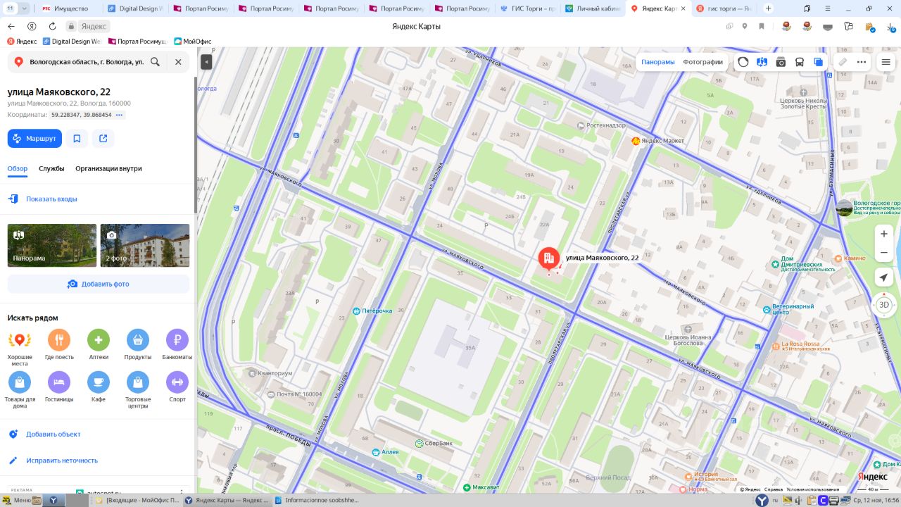 Квартира, площадью 40,5 кв.м., кадастровый номер 35:24:0201003:439, расположенная по адресу: Вологодская область, г. Вологда, ул. Маяковского,д.22,кв.10 1 Штука (шт)
