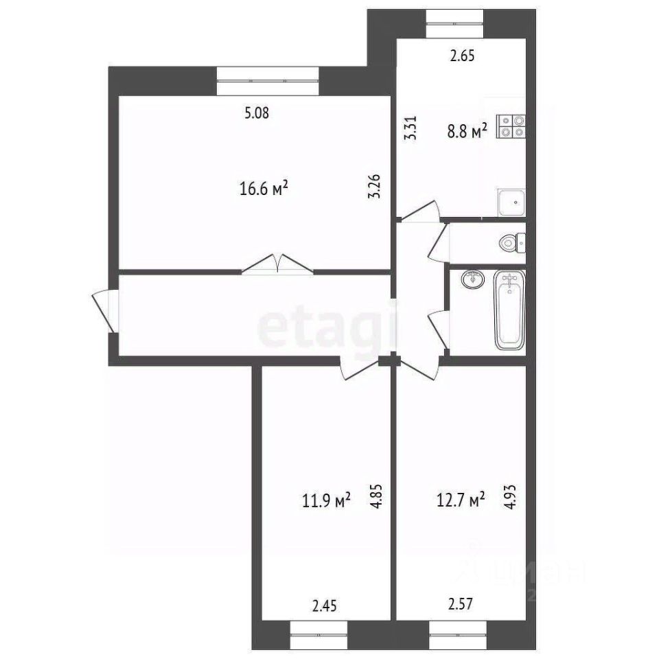Отдельный санузел — это дополнительный плюс, который обеспечит удобство в повседневной жизни. Перед входом в квартиру расположен общий тамбур и кладовая, что добавляет удобства и функциональности.