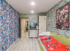 Квартира находится в кирпичном доме, что гарантирует отличную тепло- и звукоизоляцию, создавая атмосферу уюта и спокойствия. Просторная кухня оснащена современным кухонным гарнитуром, холодильником и удобным столом, что делает её идеальным местом для семейных ужинов и кулинарных экспериментов.