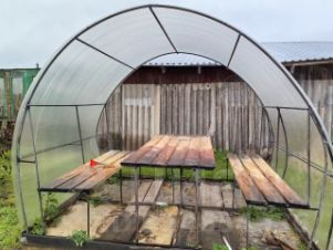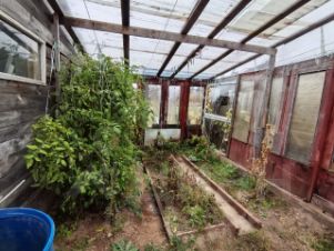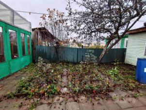 На участке много плодовых насаждений (два сада), теплица, беседка, металлический забор, откатные ворота, большой гараж с смотровой ямой, сарай с инструментами. Земля оформлена в собственность: площадь 11 соток.