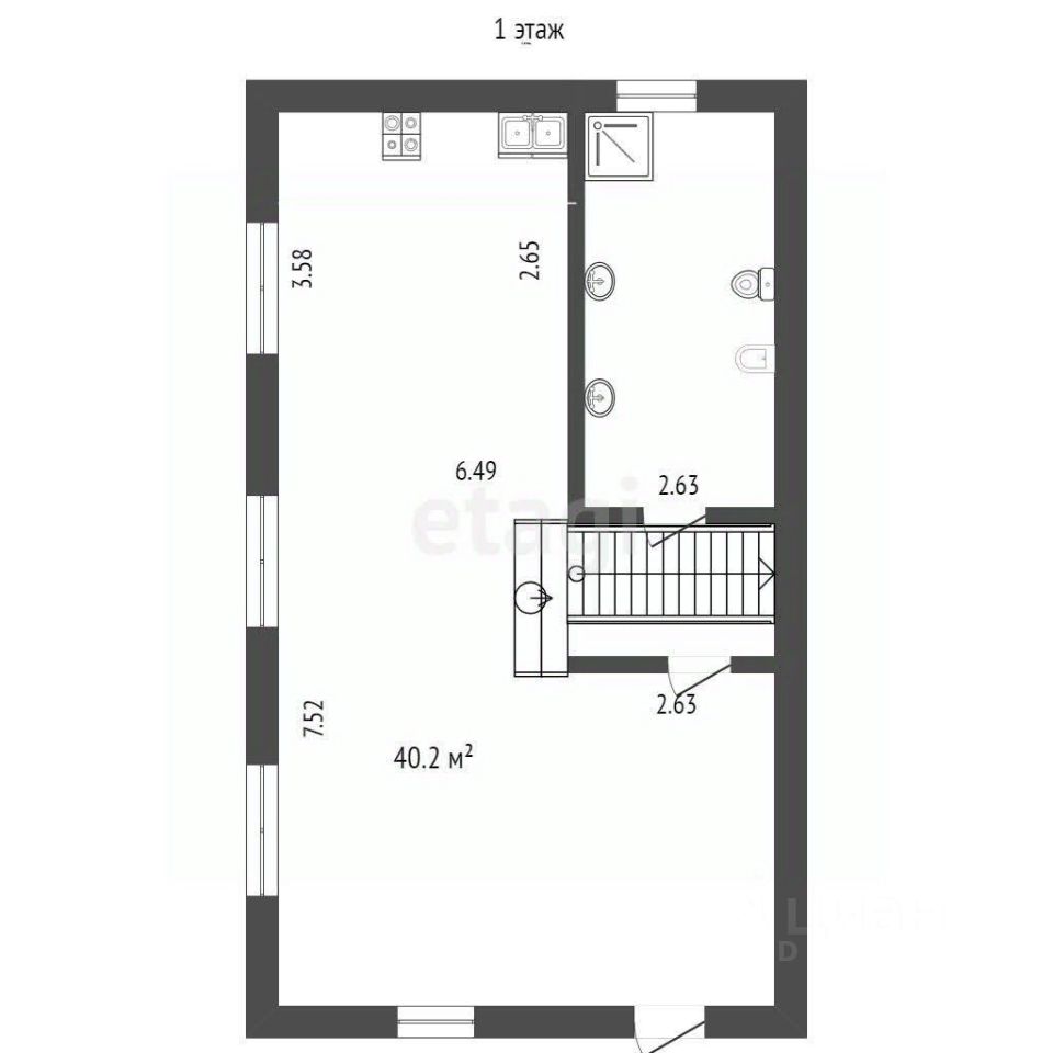 На первом этаже расположены санузел, котельня, кухня и зал.