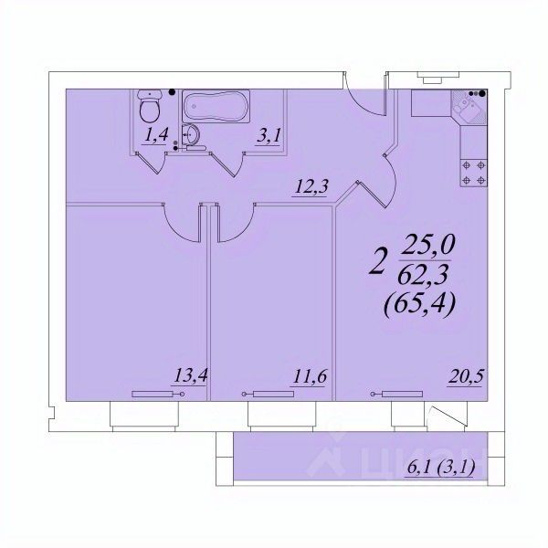 Продаётся 2-комнатная квартира в строящемся доме (Возрождения 57к1), срок сдачи: II-кв. 2027, общей площадью 65.4 кв.м., на 10 этаже. Расположение, транспортная доступность