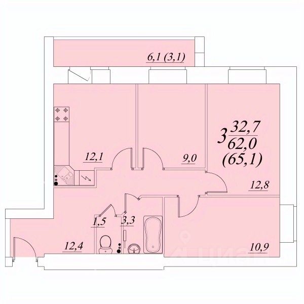 Продаётся 3-комнатная квартира в строящемся доме (Возрождения 57к1), срок сдачи: II-кв. 2027, общей площадью 65.1 кв.м., на 10 этаже. Расположение, транспортная доступность
