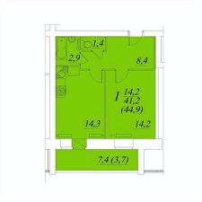 Продаётся 1-комнатная квартира в строящемся доме (Новаторов 23), срок сдачи: IV-кв. 2028, общей площадью 44.9 кв.м., на 1 этаже. Расположение, транспортная доступность