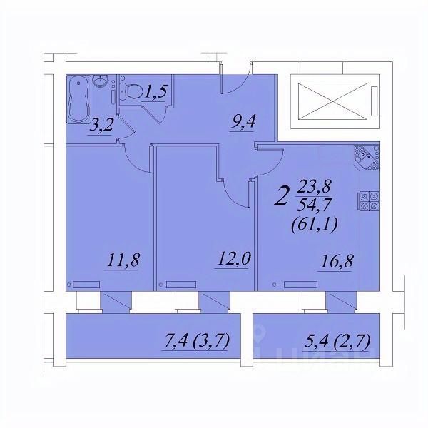 Продаётся 2-комнатная квартира в строящемся доме (Новаторов 23), срок сдачи: IV-кв. 2028, общей площадью 61.1 кв.м., на 3 этаже. Расположение, транспортная доступность