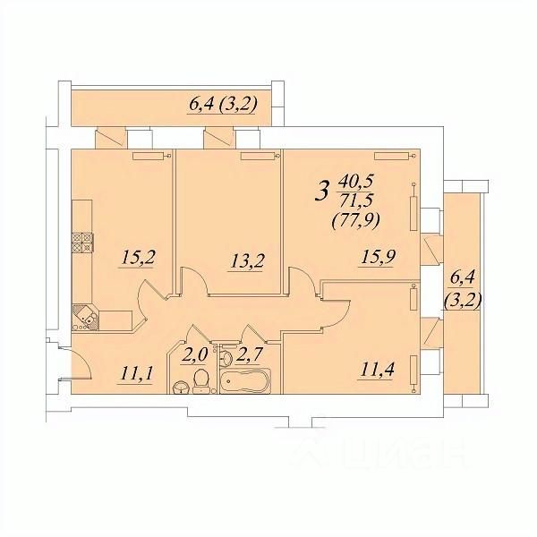 Продаётся 3-комнатная квартира в строящемся доме (Новаторов 23), срок сдачи: IV-кв. 2028, общей площадью 77.9 кв.м., на 2 этаже. Расположение, транспортная доступность