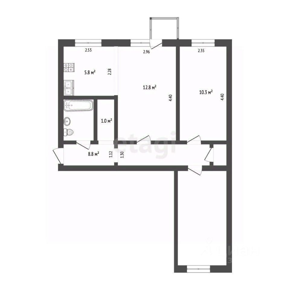Трёхкомнатная квартира 54,7 кв.м в сердце города — отличный вариант для тех, кто хочет сделать ремонт под себя!