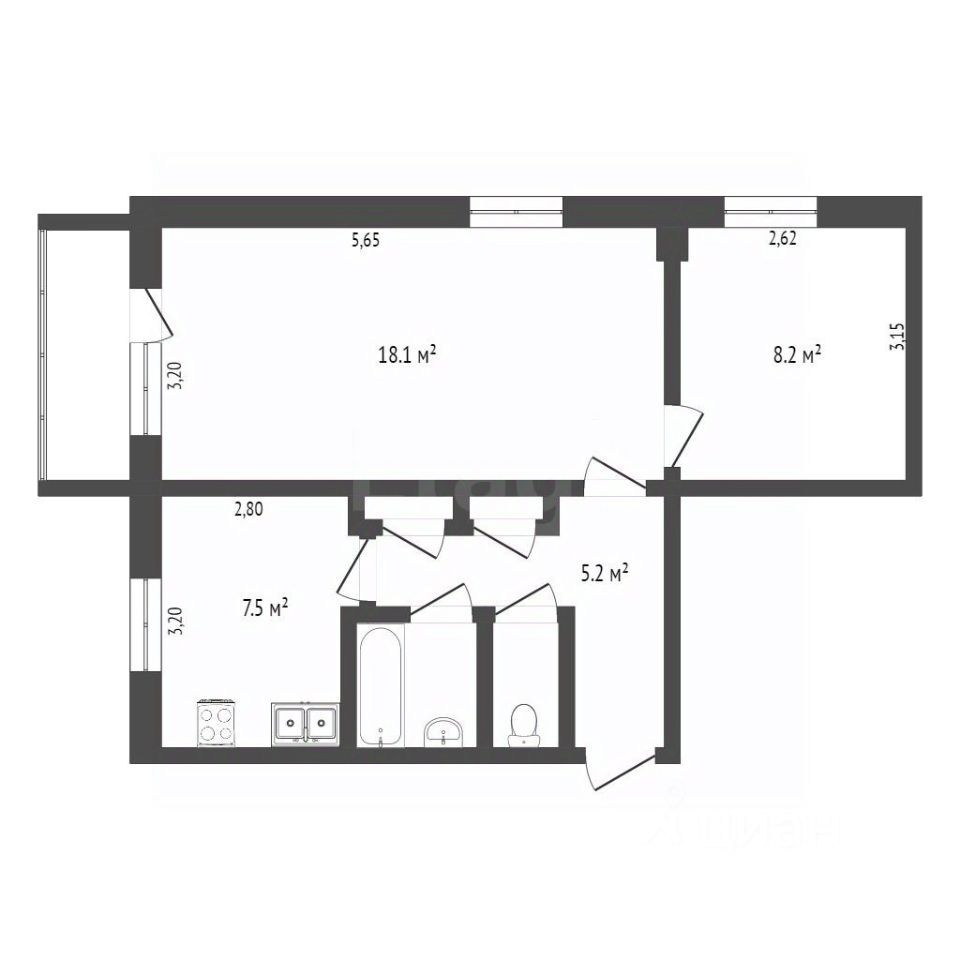 43,4 м²