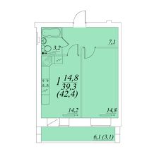 Продаётся 1-комнатная квартира в строящемся доме (Возрождения 57к1), срок сдачи: II-кв. 2027, общей площадью 42.4 кв.м., на 8 этаже. Расположение, транспортная доступность