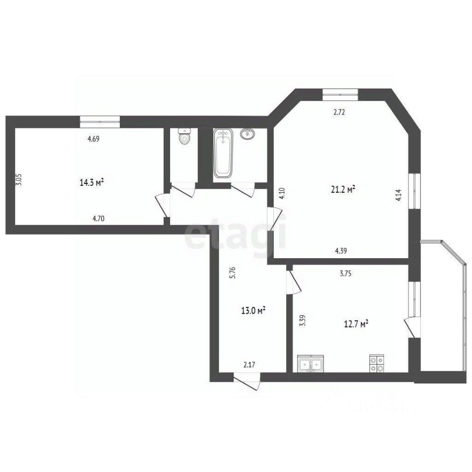 12,7 м²