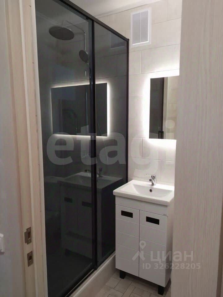В комнате уложен ламинат, в коридоре и санузле — практичный керамогранит. В санузле оборудована герметичная душевая с тропическим душем и горизонтальным трапом с сухим затвором, всё подготовлено для подключения стиральной машины. Установлено зеркало с регулировкой яркости подсветки, в комнате — светильник с управлением с пульта.