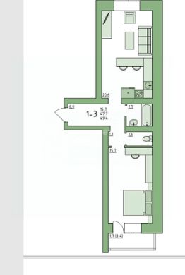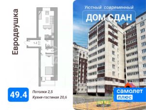 Oтличный формaт "евродвушка" с куxнeй-столовой 20.8 м2. кв.