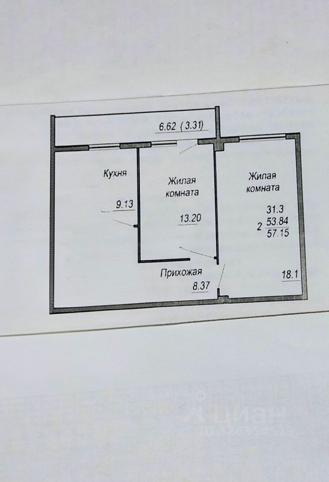 Комнаты изолированные площадью 18,1кв. м и 13,20 кв. м. с выходом на лоджию. Лоджия остеклена. Кухня 9,13 кв. м. Сан. узел с ванной комнатой раздельно.