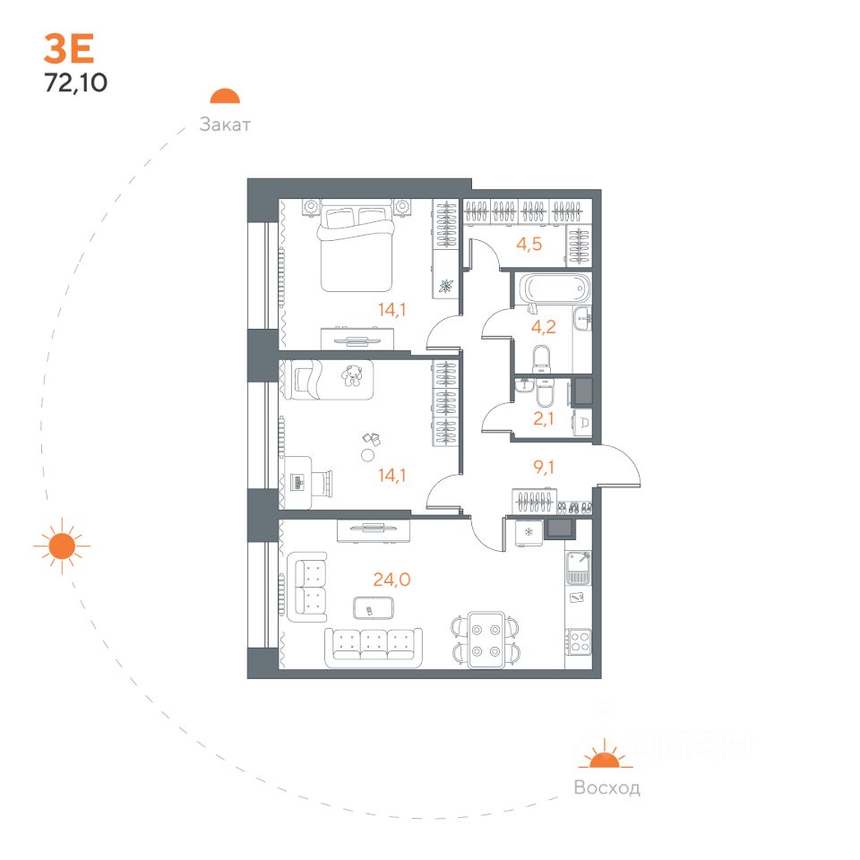 Общая площадь72,1 м²