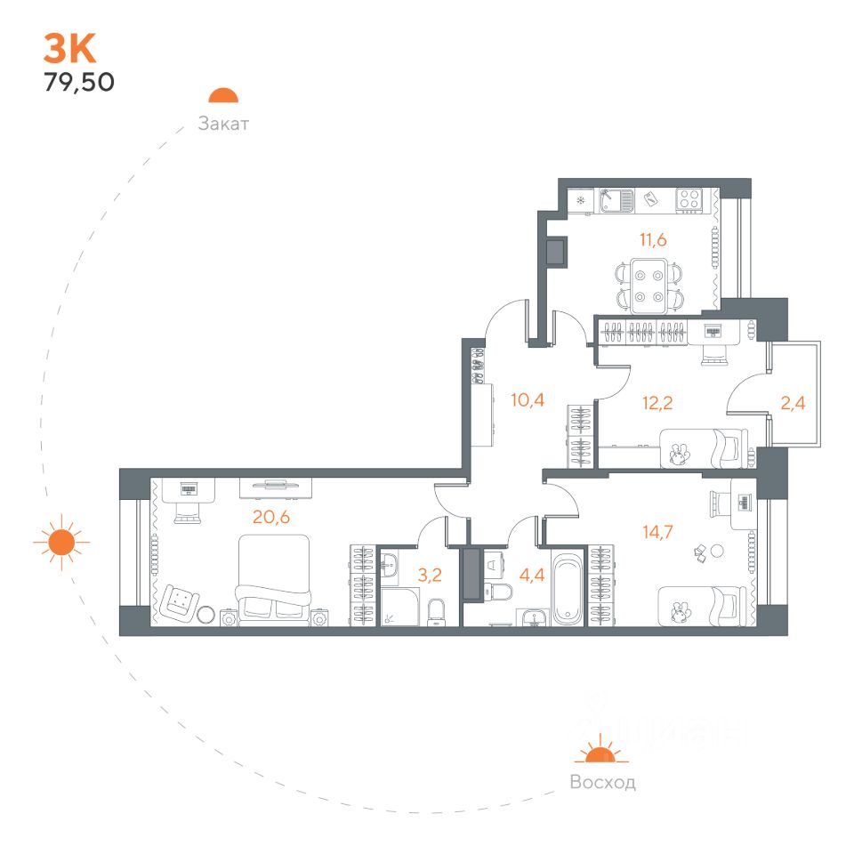 80 квартир в продаже · Сдача в 3 кв. 2026